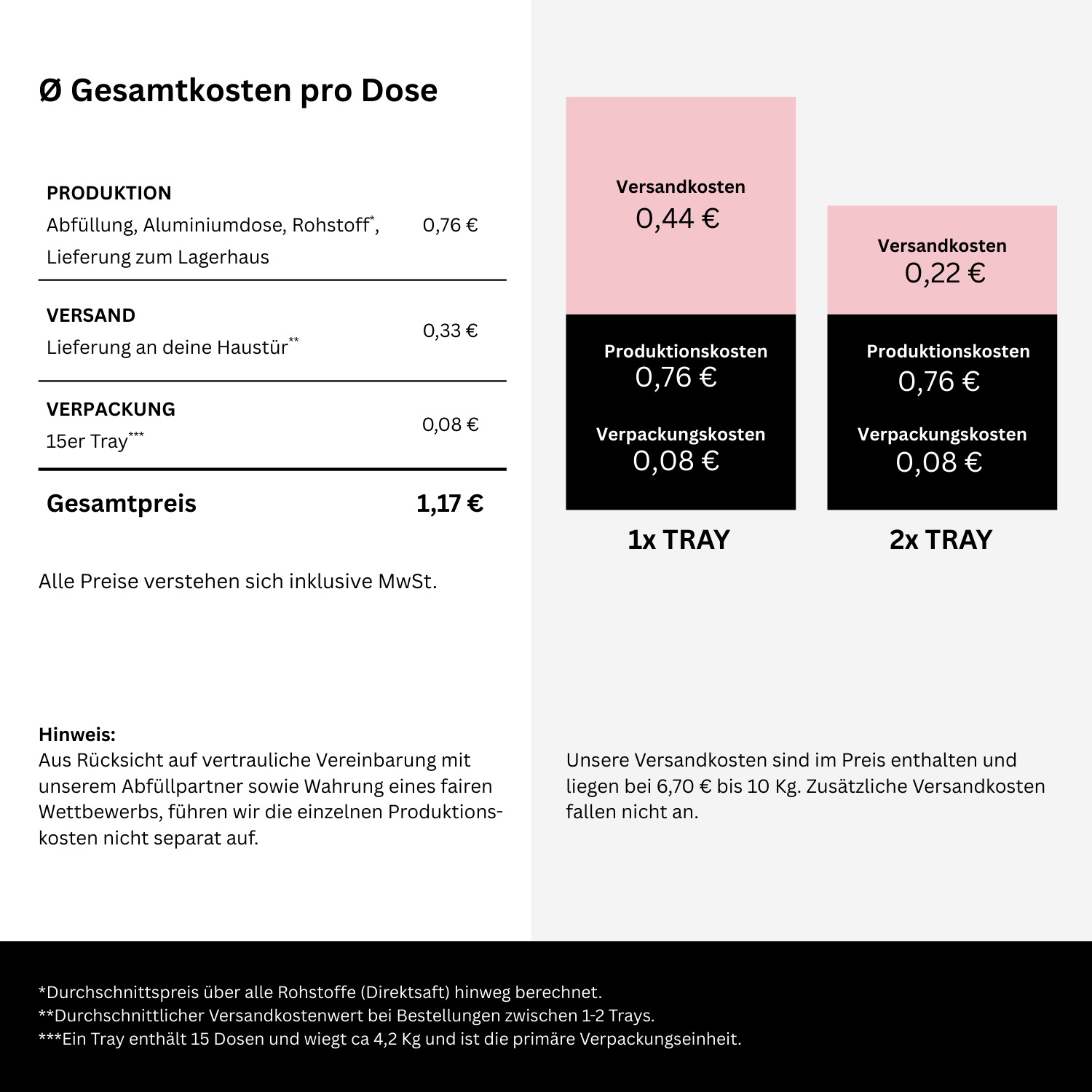 Pro Tray wird ein Einwegpfand von insgesamt 3,75€ (15x 0,25 €) berechnet.